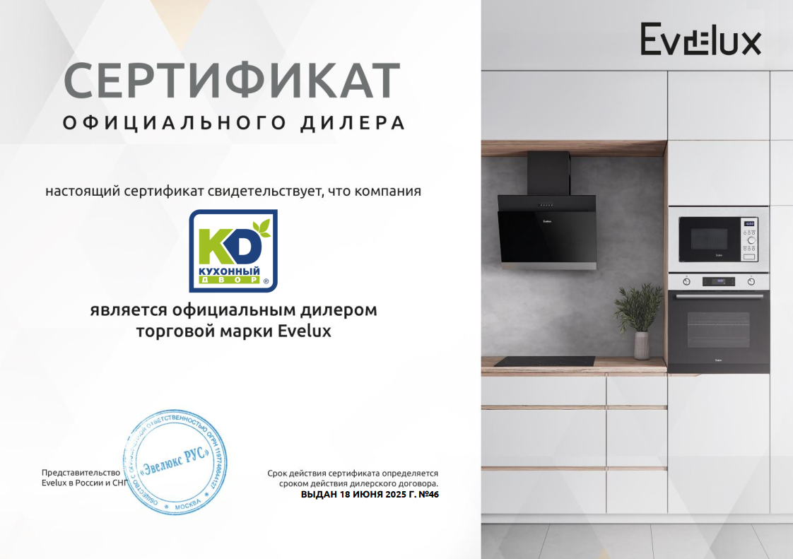 Заботясь о себе и близких, мы изучаем этикетки на продуктах питания. У кухонь этикеток с подробной информацией о составе нет. Тогда как убедиться в их качестве? Ответ на этой странице! Кухни от «KD» создаются из материалов с международным классом безопасности «Е1». Они безвредны даже для самых маленьких, и это подтверждено действующими сертификатами. Фурнитура? Встраиваемая техника? Вы можете быть уверены в них не меньше, чем в материалах! «Кухонный Двор» сотрудничает с проверенными партнерами. Убедитесь в этом сами!