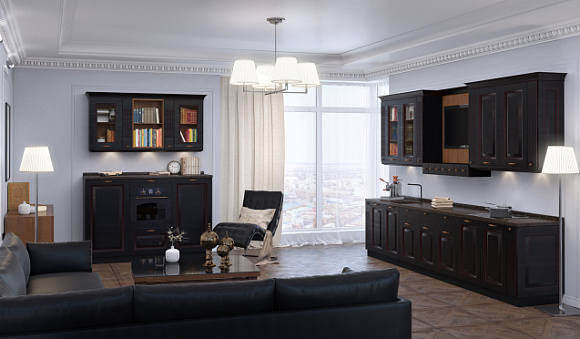 Кухонный гарнитур для большого помещения должен отличаться функциональностью, вместительностью и эргономичностью. При этом следует учитывать и стиль, в котором выполнен комплект.