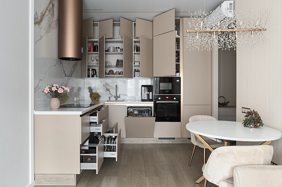 Кухня — то самое место, где собирается вся семья, делятся новостями и рождаются самые тёплые воспоминания. Чтобы это пространство было не только красивым, но и удобным, рекомендуем заранее продумать системы хранения. Грамотная организация поможет избежать беспорядка, упростит процесс готовки и сделает кухню ещё более приятной. В этой статье поделимся полезными идеями, которые помогут решить эту задачу.