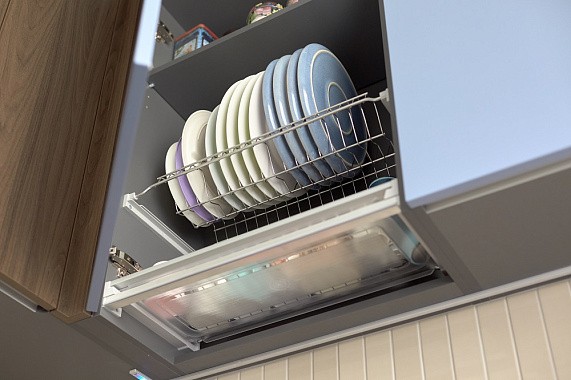 - наклонные полки в шкафах идеально подходят для тарелок, делая их доступными и аккуратно размещенными.