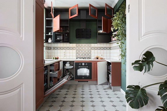 Для компактных кухонь каждая деталь имеет значение. Узкие проходы, выступающие стены, ниши и трубы требуют точного проектирования. Стандартные гарнитуры не всегда подходят — их приходится подрезать или менять расположение шкафов, что снижает функциональность.