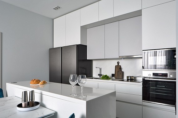 Особое внимание уделяется функционалу кухни: правильно распределяются рабочие зоны, предусмотрены скрытые шкафы для хранения, выдвижные столешницы и острова. Это позволяет создать комфортную и одновременно визуально лёгкую атмосферу.