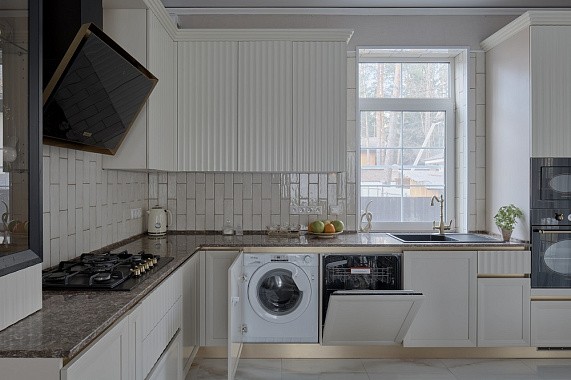 В таких проектах нет случайных зазоров или “мертвых зон”: каждый шкаф и модуль подбирается с точностью до миллиметра. Это особенно важно для встроенной техники — ведь её нужно встраивать точно и безопасно.