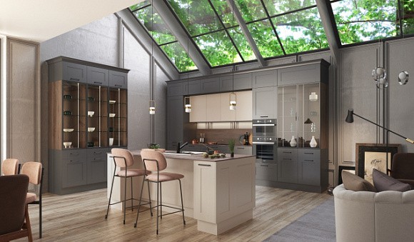 Также поможет сэкономить отказ от части навесных шкафчиков. Их можно сочетать с открытыми полками (разные вариации присутствуют в каталоге кухонь).