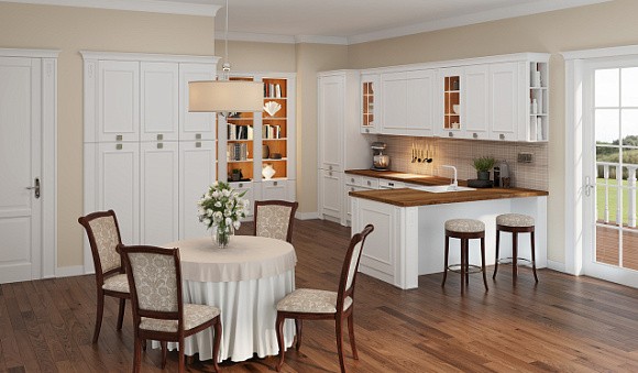 • Из натурального дерева. Кухни из массива – самый прочный и износостойкий материал из всех. Сэкономить на нем не получится, т.к. это натуральное полотно, которое достаточно дорогого стоит. Но и оно имеет свои недостатки. В частности, подверженность влажности и рассыхание.