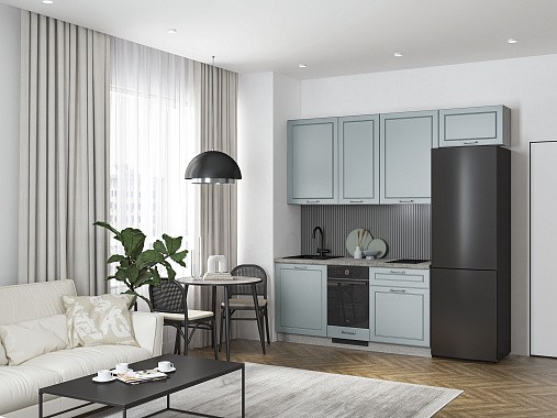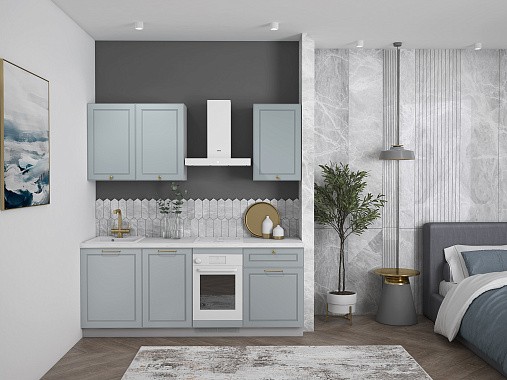 Кухня Лея — компактное готовое решение в классическом стиле, сочетающее элегантный дизайн и абсолютную функциональность. Изящные фасады с рамочной фрезеровкой придают ей нотку утончённости, а до мелочей продуманная конструкция делает её идеальной для небольшого помещения, в котором каждый сантиметр должен быть полезным.