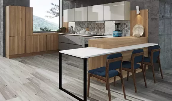 Отличительной особенностью кухни серого цвета является сочетание преимуществ двух основных оттенков – черного и белого. В результате получается цвет, символизирующий гармонию, стабильность и порядок.