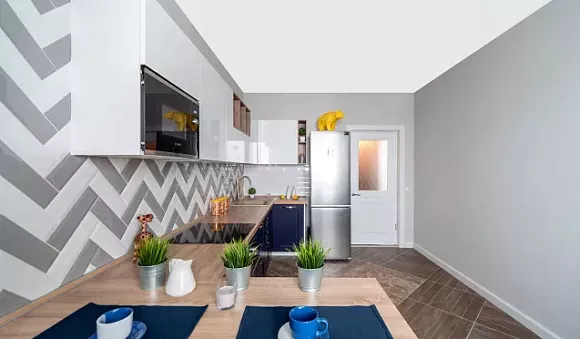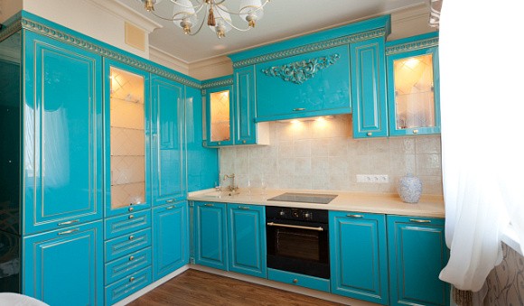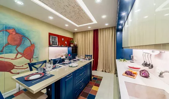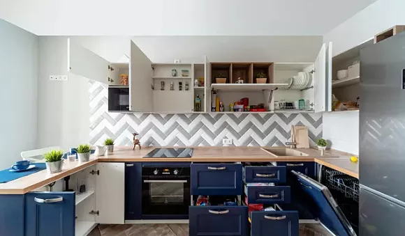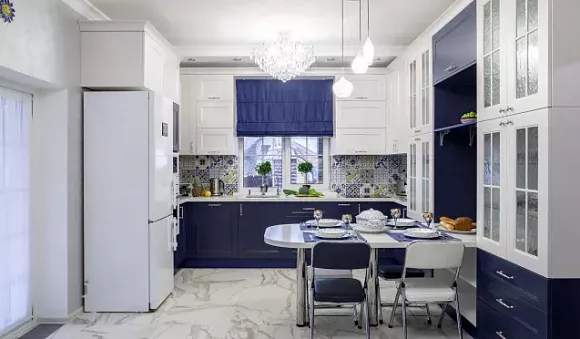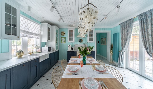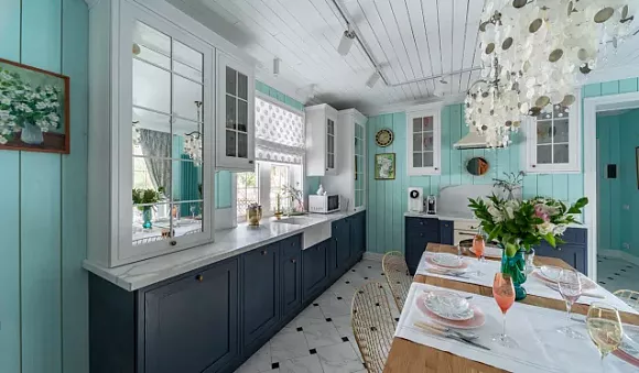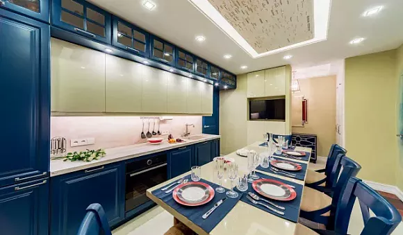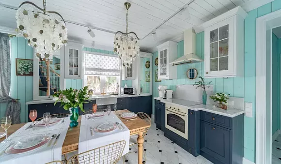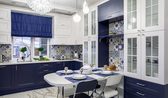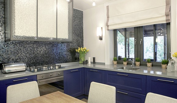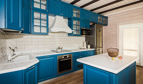 Как применять синий в интерьере кухни