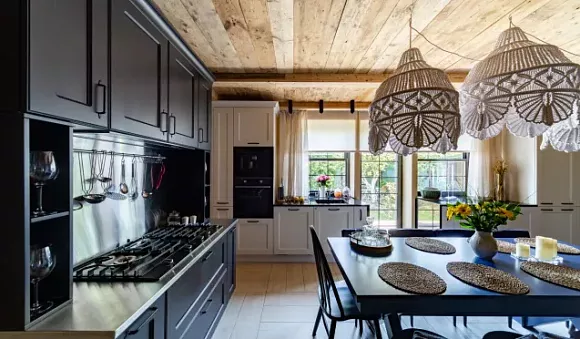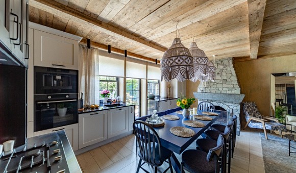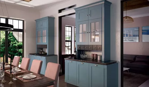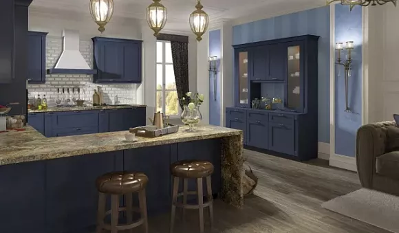 Приглушенный синий отлично впишется в кухню классика.