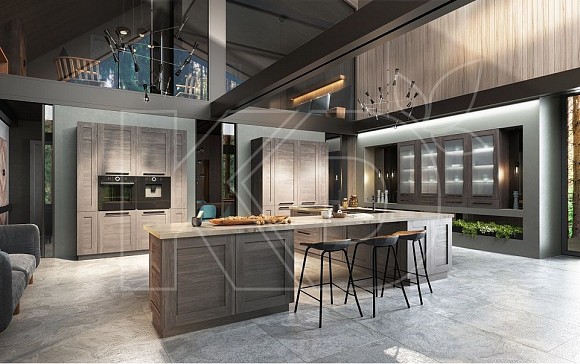 Современная кухня из бука, ясеня или дуба может быть выполнена в любом дизайне и оттенке. Структура волокон древесины позволяет хорошо впитывать красящие составы и создавать интересные композиции.