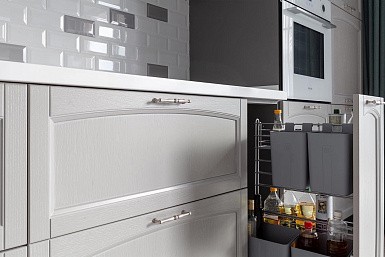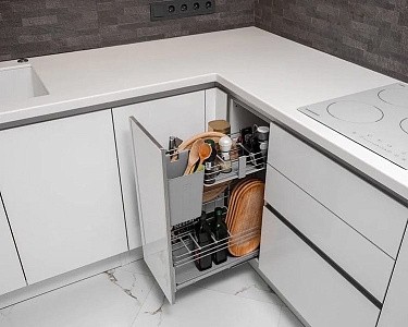 В современных кухонных гарнитурах и мебели всё чаще применяются инновационные системы хранения, которые позволяют рационально использовать пространство и сохранять порядок. Это могут быть выдвижные ящики с органайзерами для столовых приборов, угловые шкафы с поворотными полками, выдвижные полки для посуды или специальные системы хранения для бутылок и пряностей. Такие системы делают кухню более функциональной и удобной.