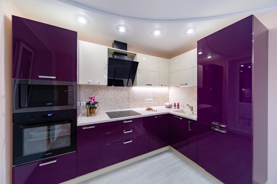 Еще один вариант, позволяющий визуально увеличить территорию помещения – глянцевая кухня. Ее фасады способны отражать солнечный свет, за счет чего и увеличивается пространство.