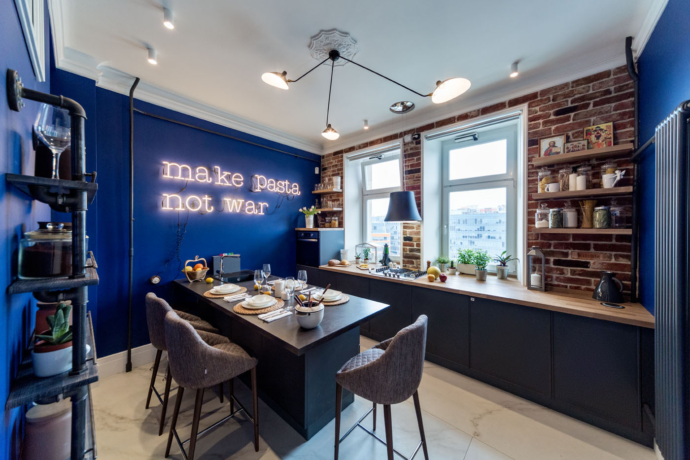 Во-первых, "Лотта" в проекте не имеет верхних ярусов - все расположено за фасадами нижних. Во-вторых, все фасады едины - дизайнеры расположили выкатные ящики внутрь. Это удобно, стильно и свежо! Необычно возвращение к «холодному шкафу» - месту под подоконником, которое помнят все, кто родился и жил в СССР. В современной подаче своеобразный холодильник выглядит классно, а самое главное - он будет полезен в хозяйстве. Функциональный остров, расположение духового шкафа на уровне глаз, рациональное использование пространства подоконника - это и многое другое делает кухню «Лотта» настоящей звездой телевизионного эфира!
