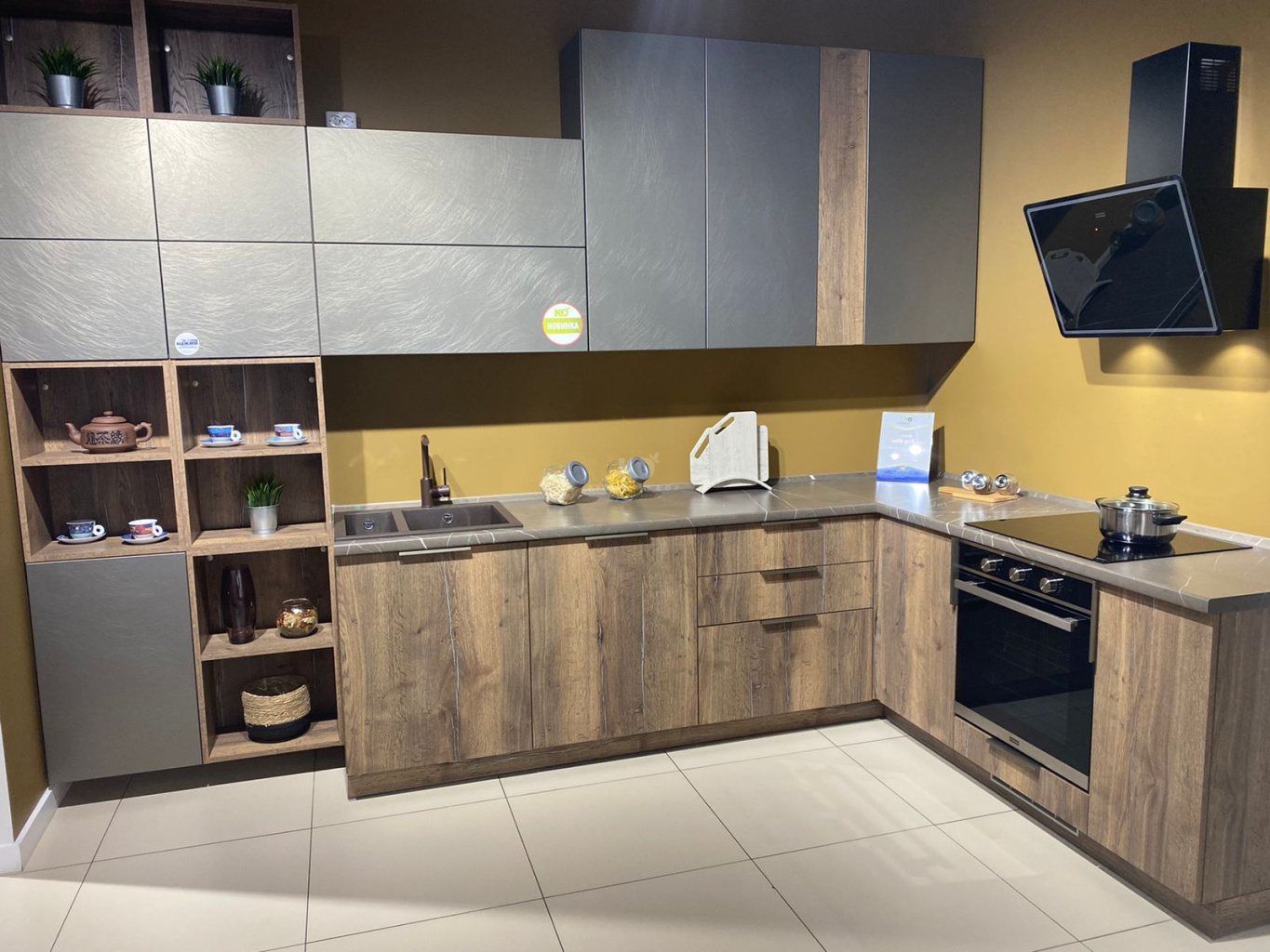 Кухонный ДворКаталогРаспродажа выставочных образцовКухня Эмма металл + Стоун Вуд / г. Санкт-Петербург