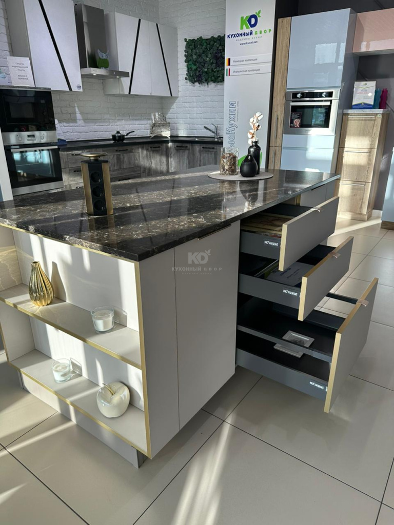Фасады — МДФ с покрытием "Extra Touch Matt", кромка золото.