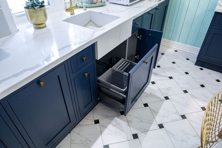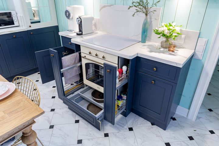 И напоследок пара слов о внутреннем наполнении. «Беатрис» невероятно удобна. Она имеет: держатели для ножей специй, тарелок, фольги и пищевой плёнки, удобные органайзеры, ящики с высокими боковыми стенками из закалённого стекла, выдвижную систему сортировки мусора, удобные узкие бутылкодержатели и многое другое. Готовить здесь – значит, получать удовольствие! А если кухня приносит удовольствие – значит, она близка к совершенству!